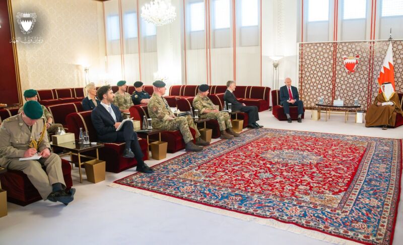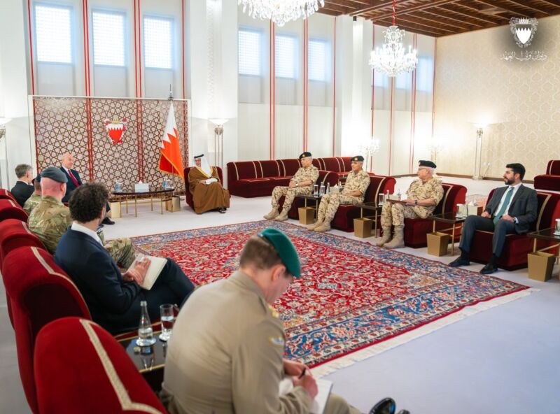 His Royal Highness the Crown Prince, Deputy Supreme Commander of the Armed Forces, and Prime Minister, #Salman_bin_Hamad Al Khalifa, meets with The Right Honourable John Healey MP @JohnHealey_MP, Secretary of State for Defence of the United Kingdom #Bahrain #UK https://x.com/BahrainCPnews/status/2038663780872196270/photo/1
