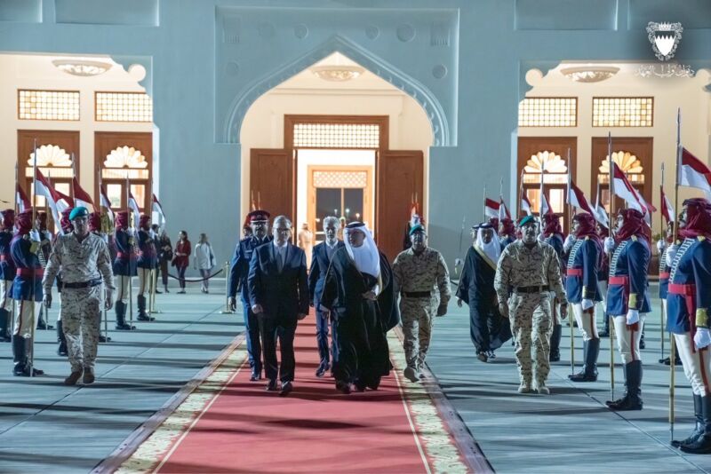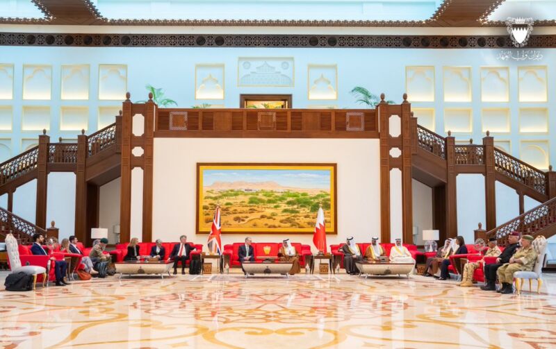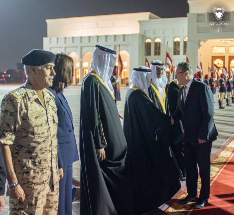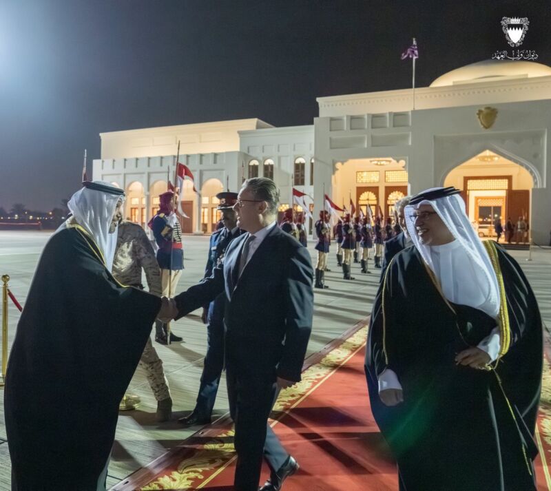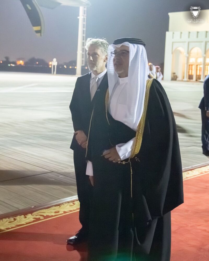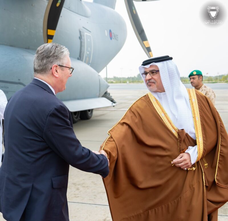 His Royal Highness the Crown Prince and Prime Minister, #Salman_bin_Hamad Al Khalifa, receives the Rt Hon Sir @Keir_Starmer MP, the Prime Minister of the United Kingdom of Great Britain and Northern Ireland, @10DowningStreet, as the Prime Minister arrives in the Kingdom of https://x.com/BahrainCPnews/status/2042239561120514140/photo/1