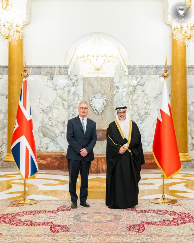His Royal Highness the Crown Prince and Prime Minister, #Salman_bin_Hamad Al Khalifa, bids farewell to the Rt Hon Sir @Keir_Starmer MP, the Prime Minister of the United Kingdom of Great Britain and Northern Ireland, @10DowningStreet, following the Prime Minister's visit to the https://x.com/BahrainCPnews/status/2042312126262370314/photo/1