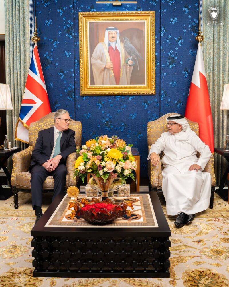 His Royal Highness the Crown Prince and Prime Minister, #Salman_bin_Hamad Al Khalifa, meets with the Rt Hon Sir @Keir_Starmer MP, the Prime Minister of the United Kingdom of Great Britain and Northern Ireland @10DowningStreet, during which HRH urged #Iran to cease its hostile https://x.com/BahrainCPnews/status/2042303522721735057/photo/1