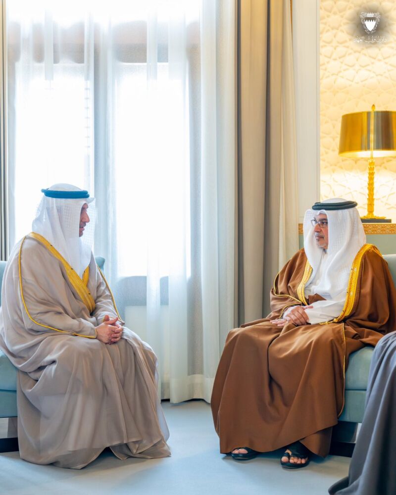 His Royal Highness the Crown Prince and Prime Minister, #Salman_bin_Hamad Al Khalifa, meets with Mohammed bin Mahfoodh Alardhi, Executive Chairman of Investcorp @Investcorp #Bahrain https://x.com/BahrainCPnews/status/2047265781767950735/photo/1