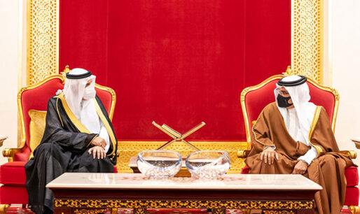 HRH the Crown Prince and Prime Minister receives condolences from HRH Prince Mansour bin Mutaib and HRH Prince Abdulaziz bin Salman following the passing of HRH Prince Khalifa bin Salman Al Khalifa