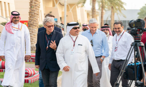 HRH the Crown Prince and Prime Minister tours the BIC following the start of the first practice session of the F1 Gulf Air Bahrain Grand Prix 2022