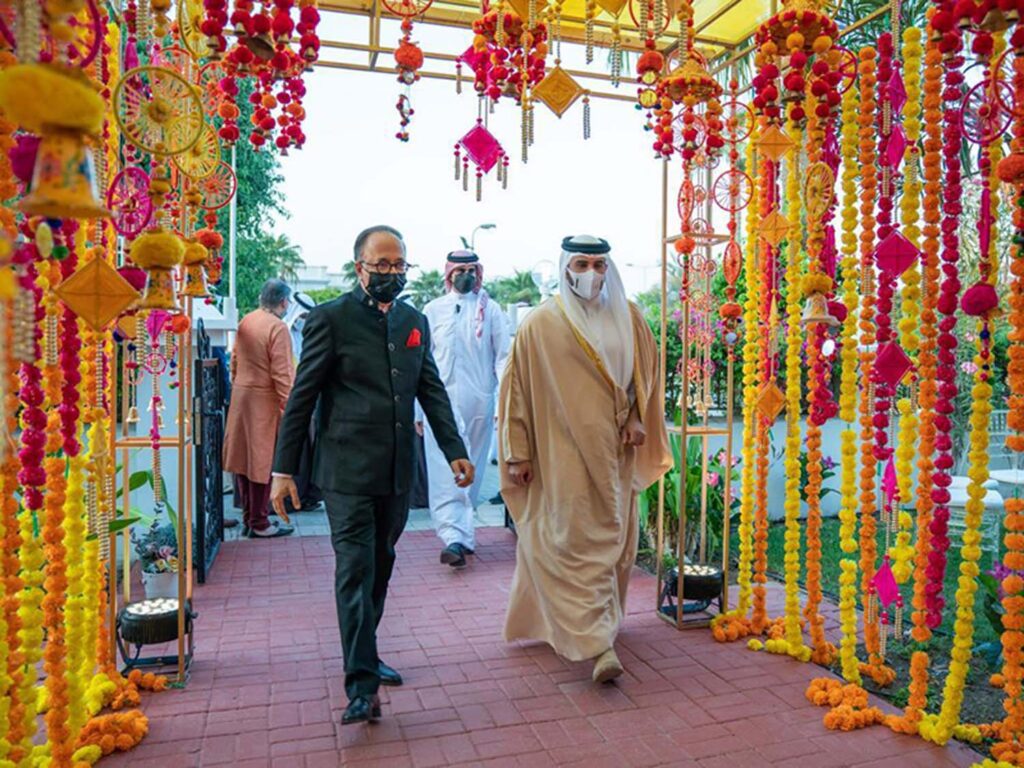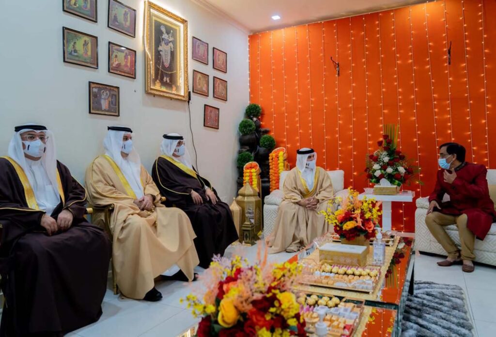 4 November 2021 On behalf of HRH the CP and PM, HH Shaikh Mohammed bin Salman Al Khalifa visits a number of families to mark Diwali
