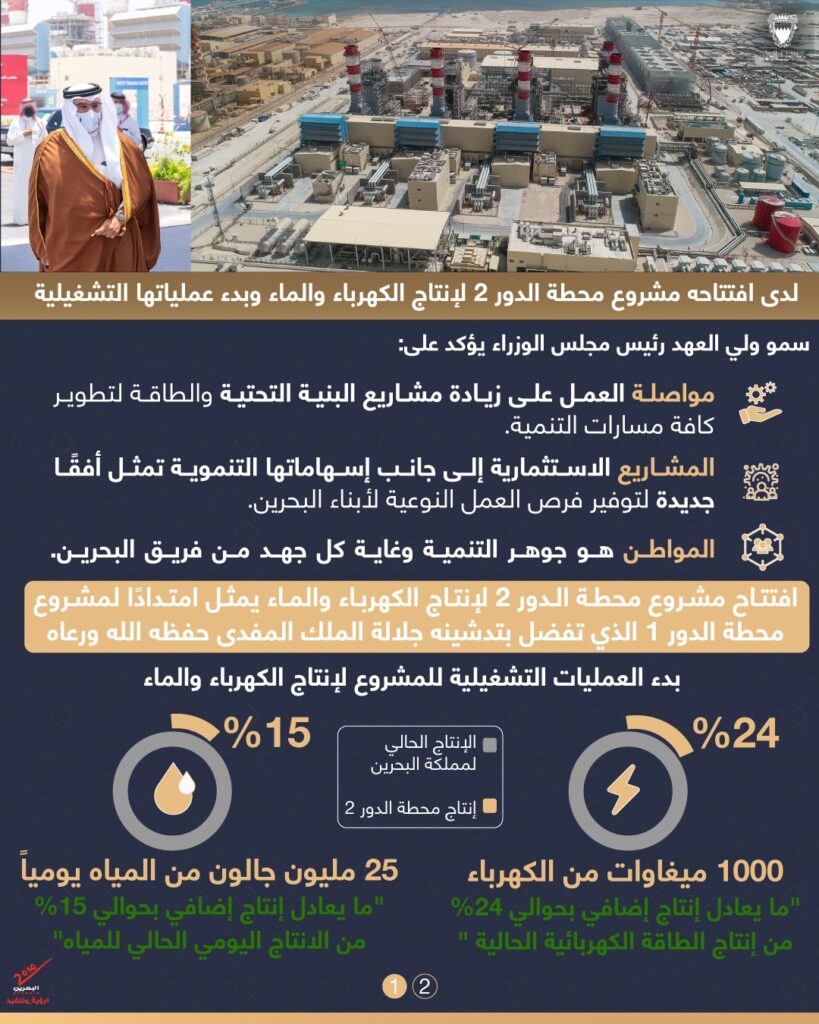 15 June 2021 HRH the Crown Prince and Prime Minister inaugurates Al Dur phase 2 as it starts its operations