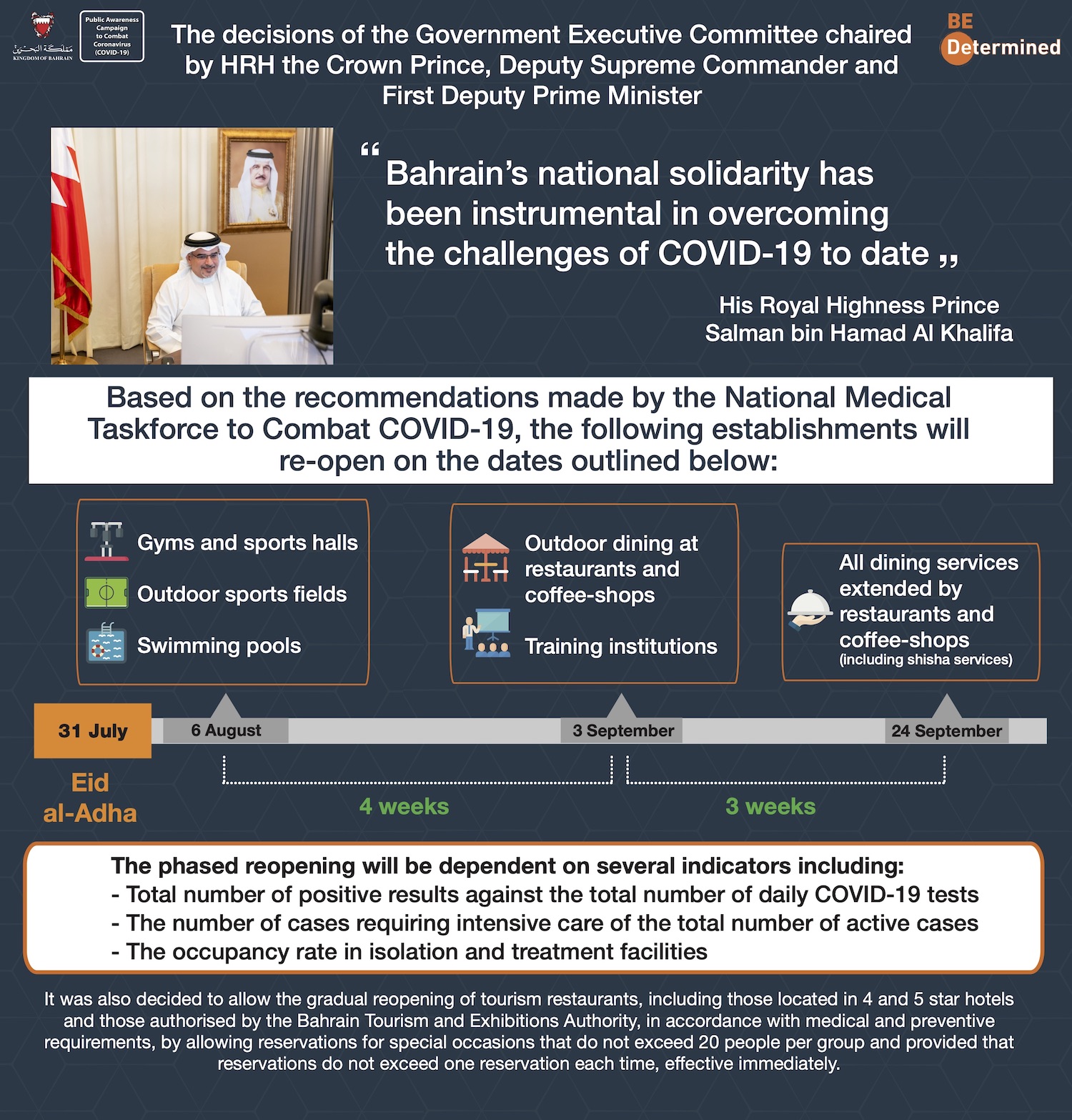 28 July 2020 HRH the Crown Prince: Bahrain’s national solidarity has been instrumental in overcoming the challenges of COVID-19 to date