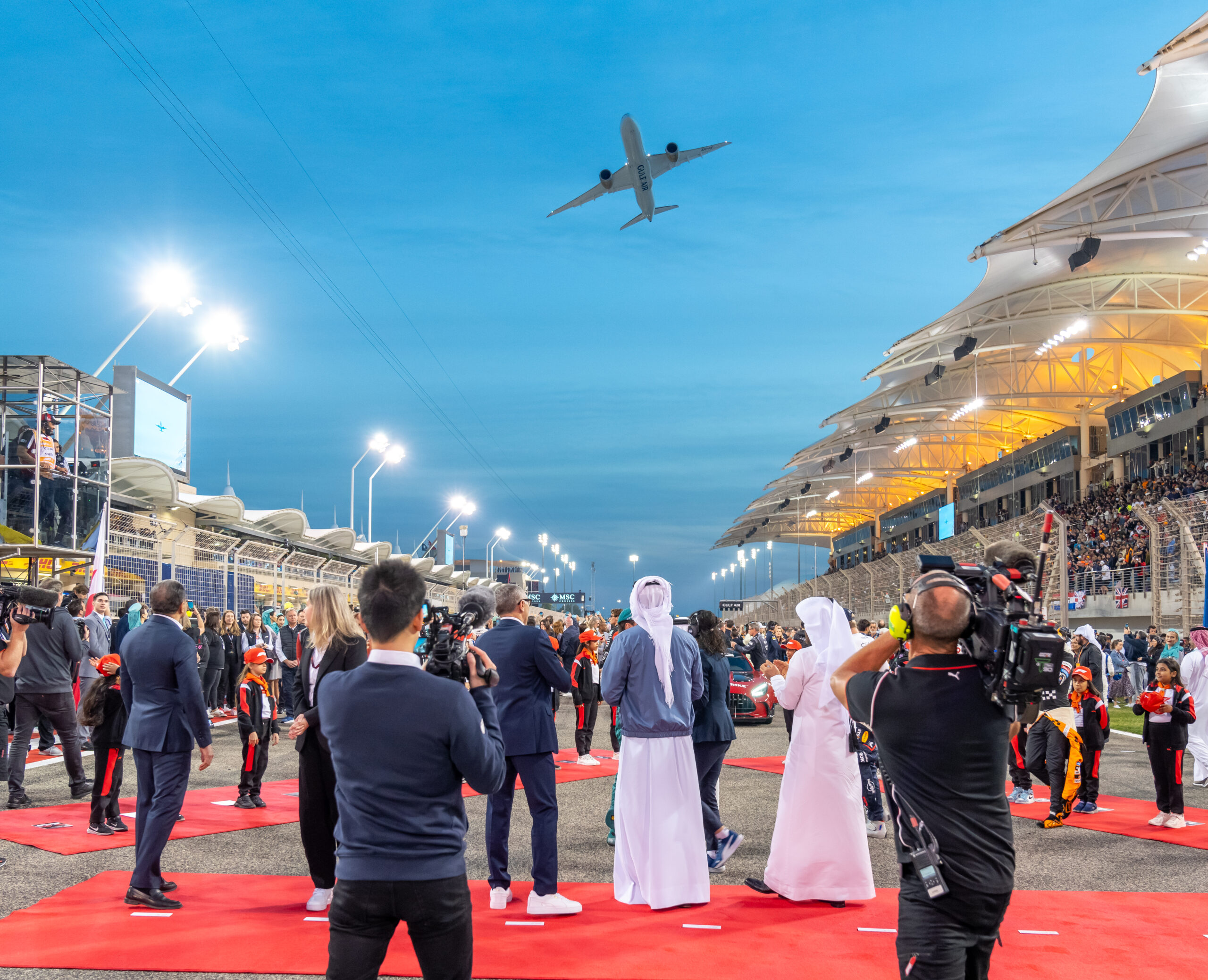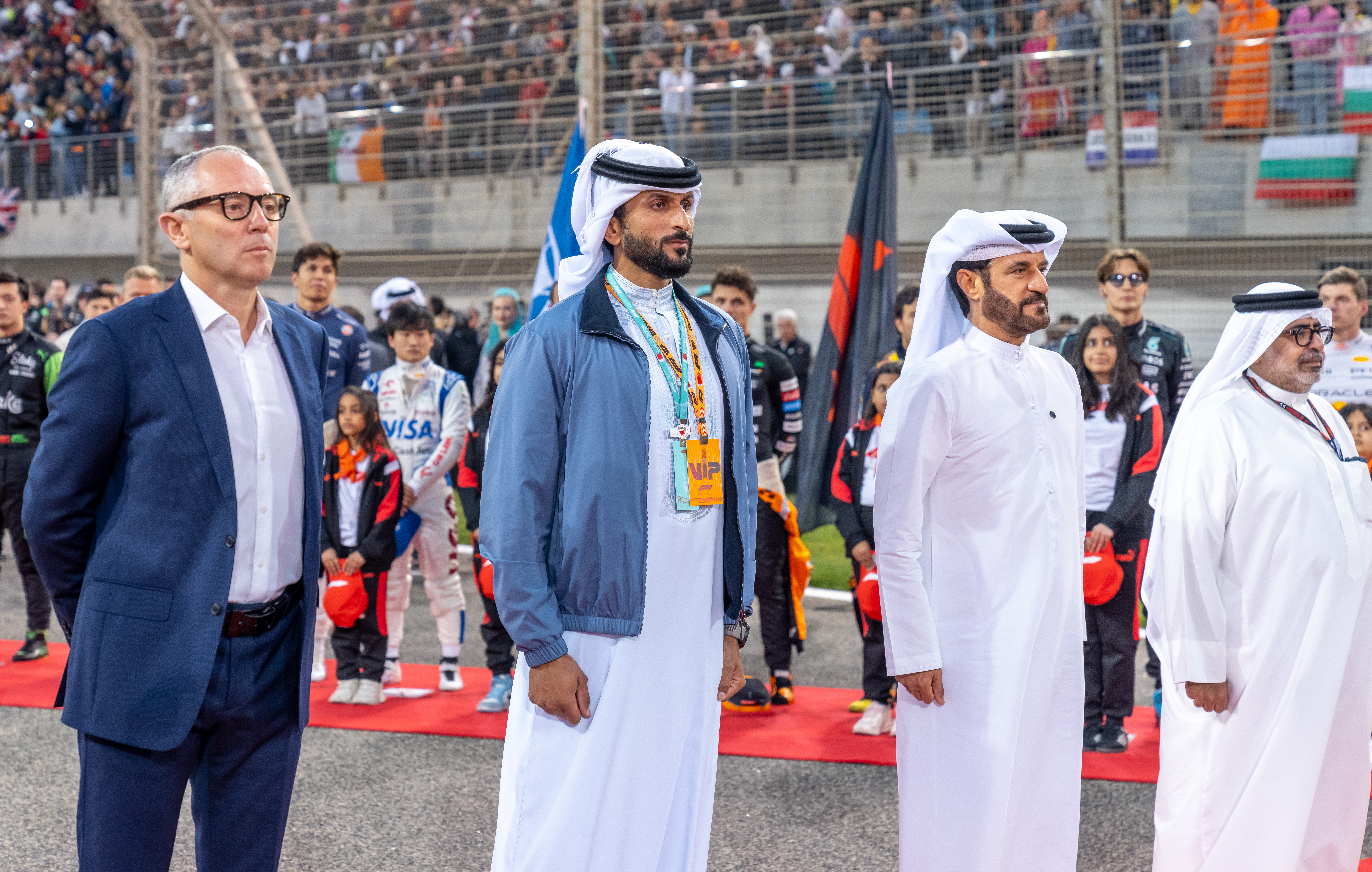 2 March 2024 HRH the Crown Prince and Prime Minister attends the 2024 Formula 1 Gulf Air Bahrain Grand Prix