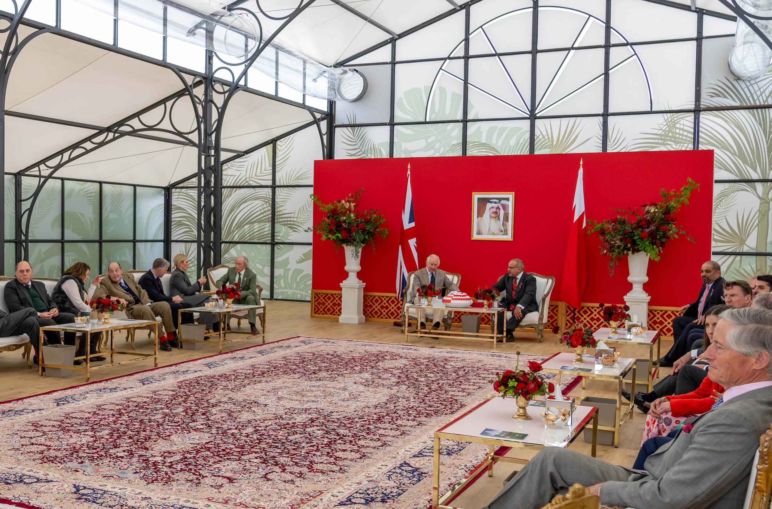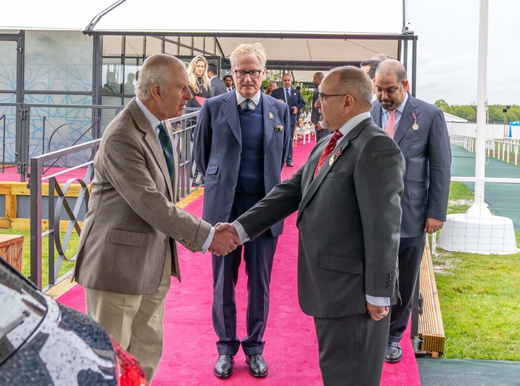 3 May 2024 HRH the Crown Prince and Prime Minister meets with The King Charles III at the Royal Windsor Horse Show Bahrain pavilion