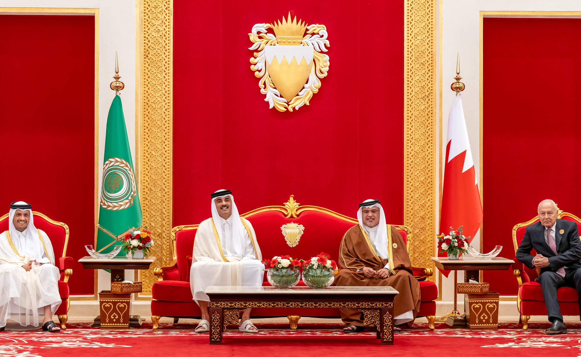 The Amir of the State of Qatar received by HRH the Crown Prince and Prime Minister