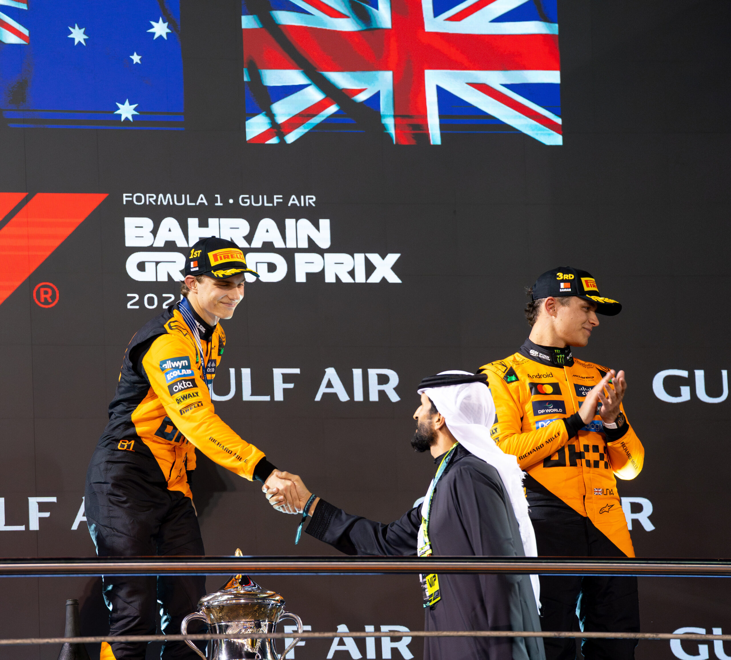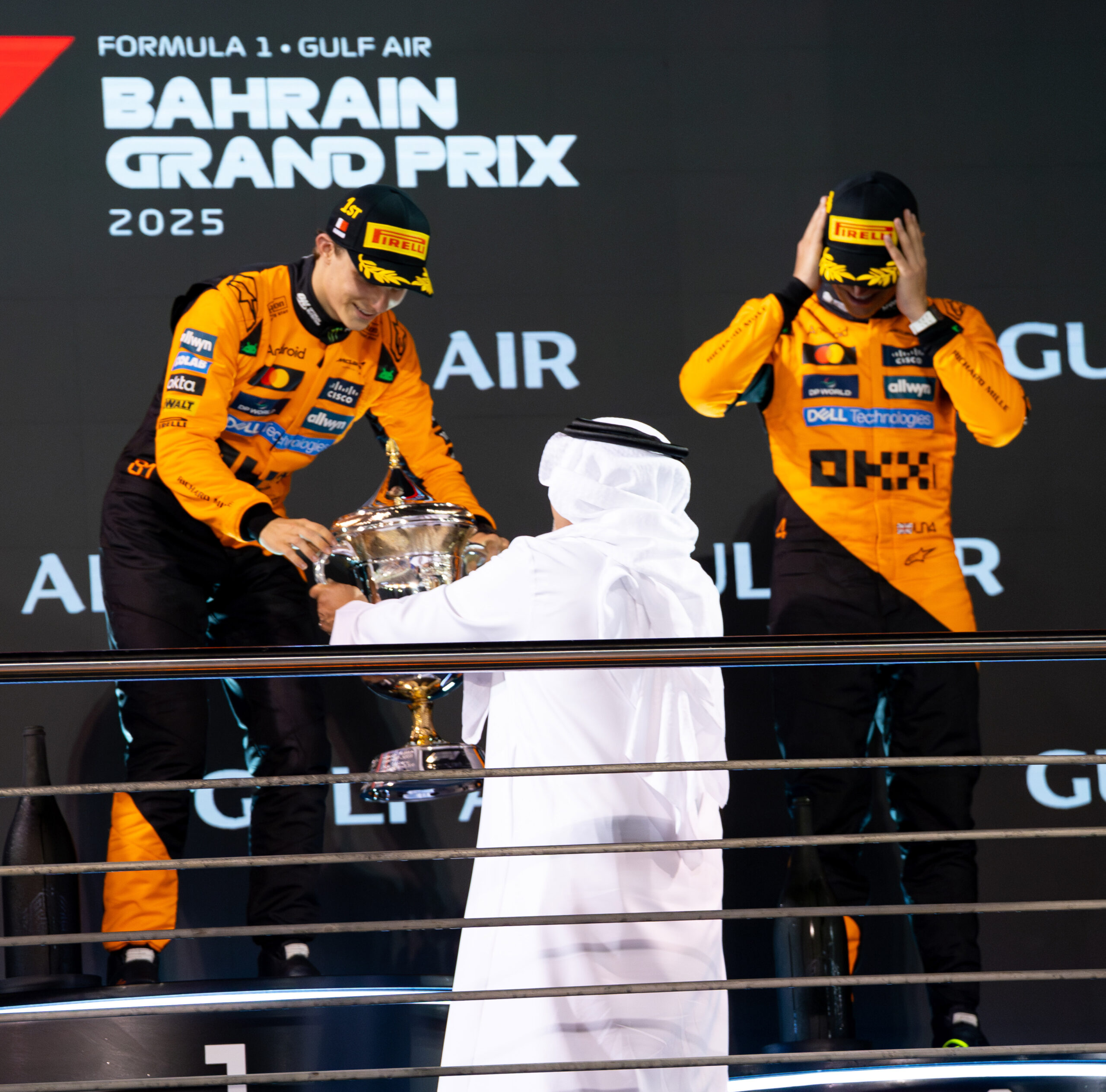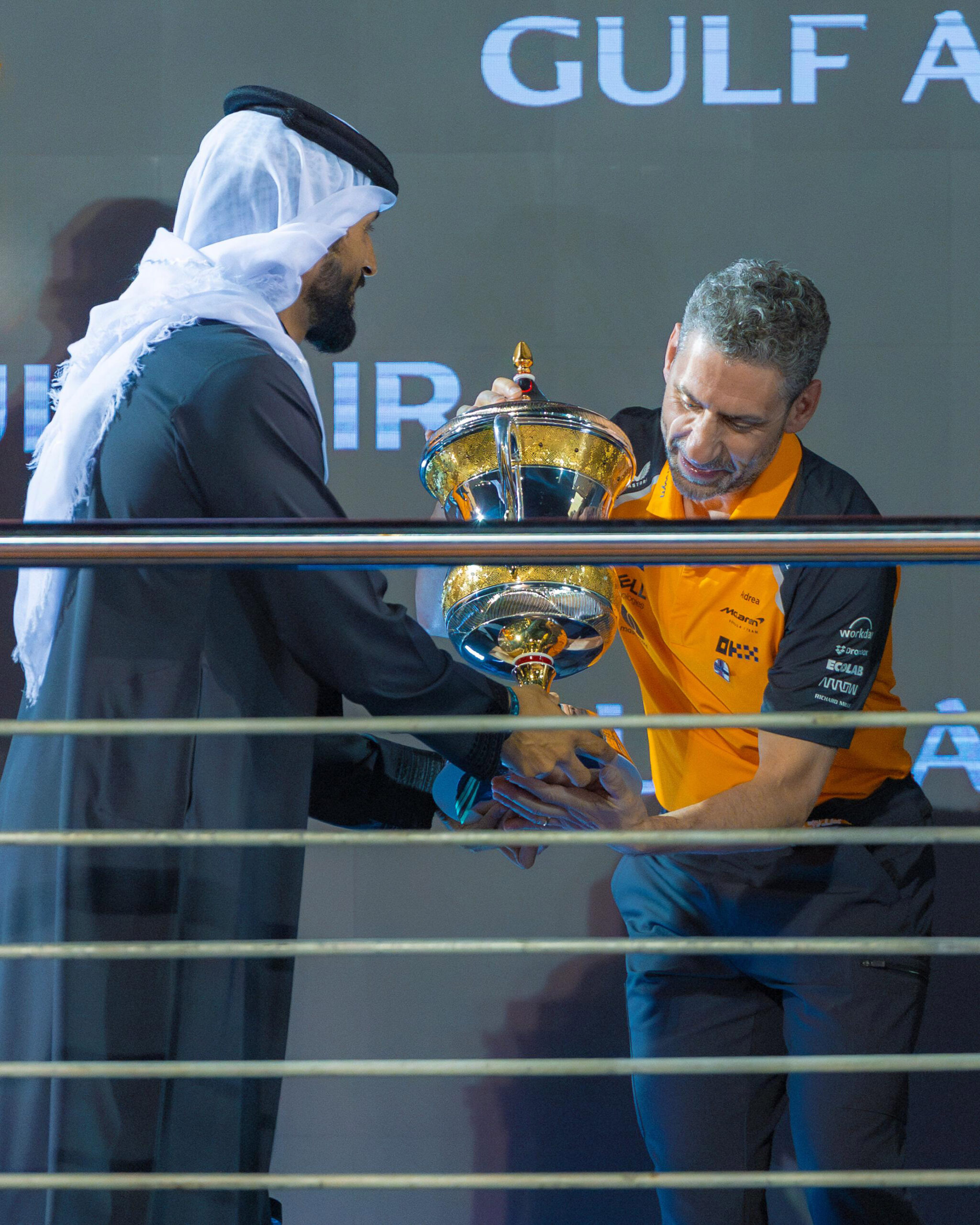 13 April 2025 HRH the Crown Prince and Prime Minister awards champion of the 2025 Formula 1 Gulf Air Bahrain Grand Prix