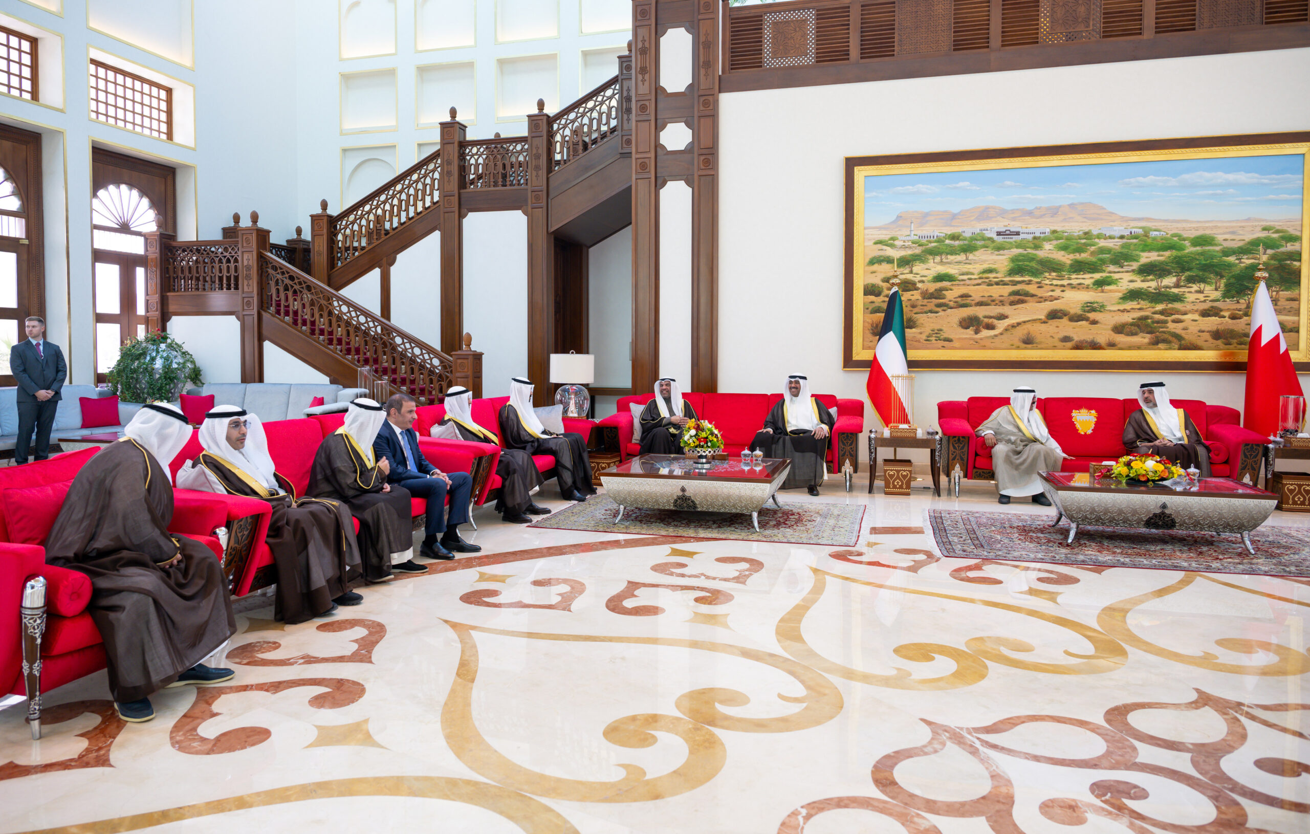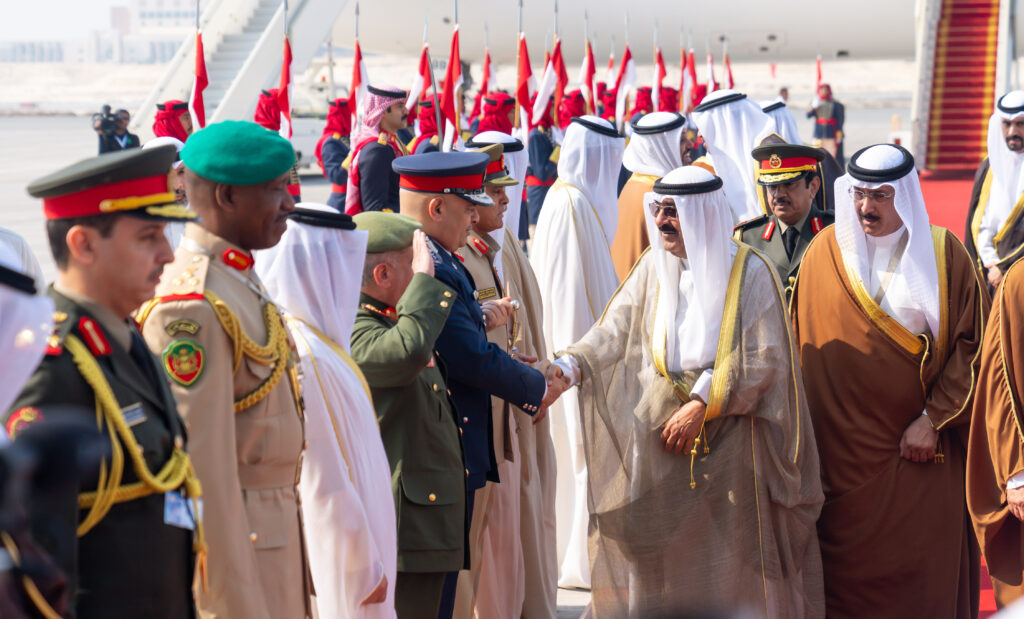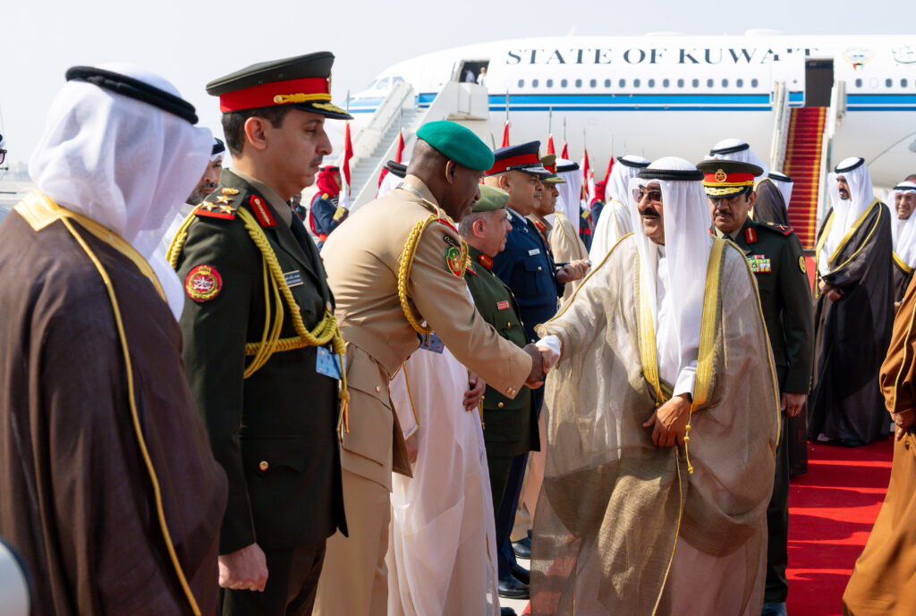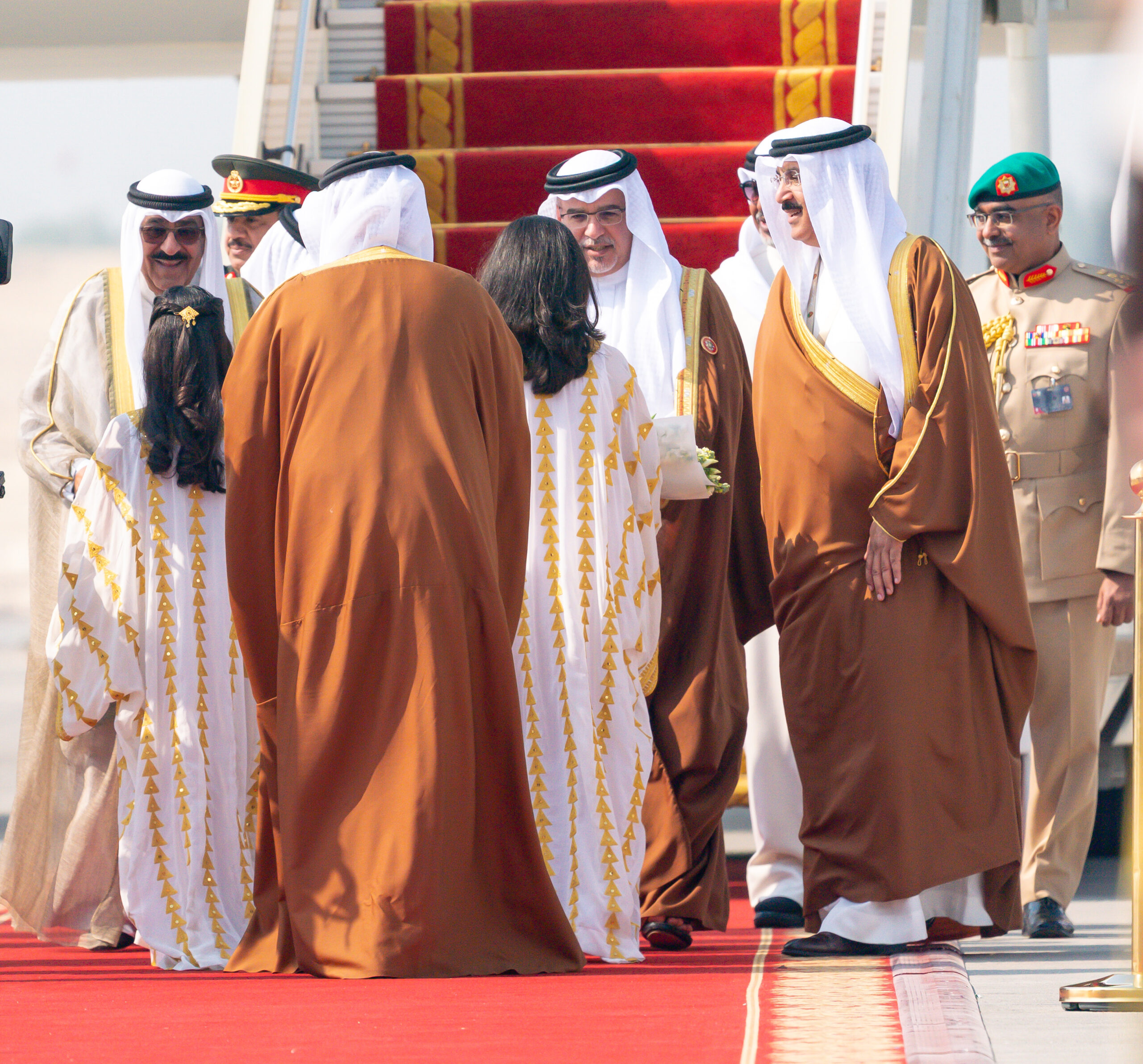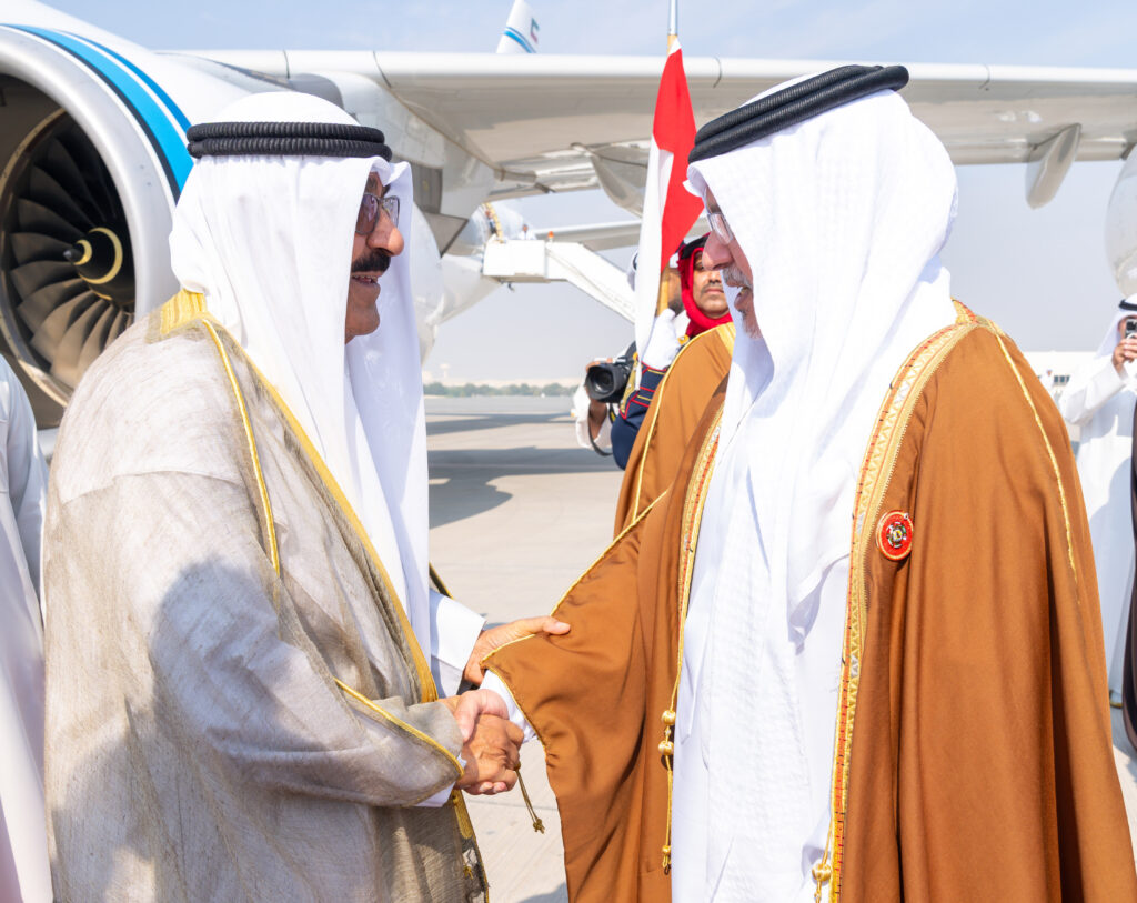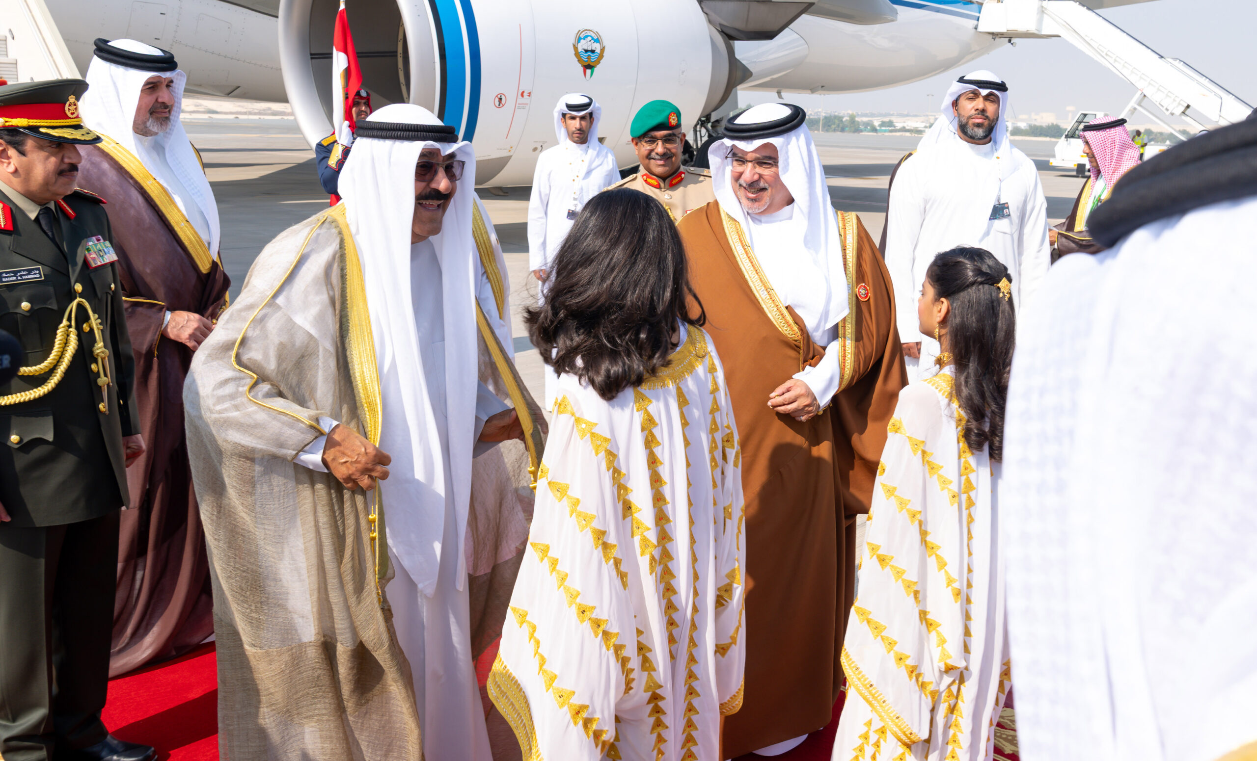 3 December 2025 HH the Amir of the State of Kuwait received by HRH the Crown Prince and Prime Minister upon arrival in Bahrain to participate in the 46th GCC Summit