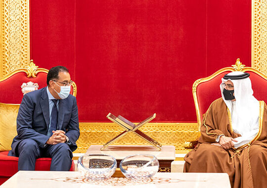 His Royal Highness Prince Salman bin Hamad Al Khalifa, the Crown Prince and Prime Minister, today received the Prime Minister of the Arab Republic of Egypt, HE Dr. Mustafa Madbouli, and his accompanying delegation, to offer condolences following the passing of His Royal Highness Prince Khalifa bin Salman Al Khalifa, at Sakhir Air Base.