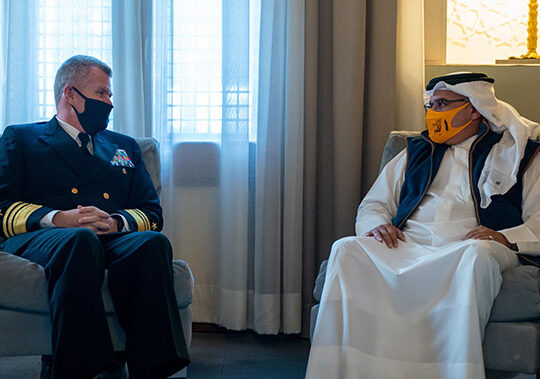 His Royal Highness Prince Salman bin Hamad Al Khalifa, the Crown Prince, Deputy Supreme Commander and Prime Minister, today met with the Commander of the U.S. Naval Forces Central Command, U.S. 5th Fleet and Combined Maritime Forces, Vice Admiral Samuel Paparo, at Riffa Palace.