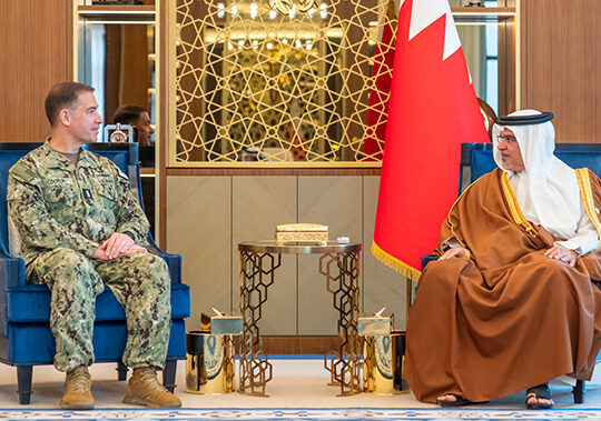 His Royal Highness Prince Salman bin Hamad Al Khalifa, the Crown Prince, Deputy Supreme Commander of the Armed Forces and Prime Minister, today received the Commander of US Naval Forces Central Command, Commander of the United States Fifth Fleet