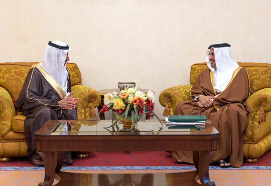 On behalf of His Majesty King Hamad bin Isa Al Khalifa, His Royal Highness Prince Salman bin Hamad Al Khalifa, Crown Prince, Deputy Supreme Commander and First Deputy Prime Minister, received a letter from the Custodian of the Two Holy Mosques King Salman bin Abdulaziz Al Saud.
