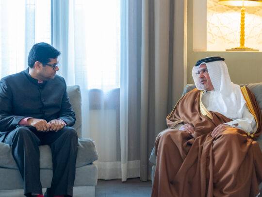 His Royal Highness Prince Salman bin Hamad Al Khalifa, the Crown Prince and Prime Minister, today met with the newly appointed Ambassador of the Republic of India to the Kingdom of Bahrain, HE Vinod Kurian Jacob, at Riffa Palace.