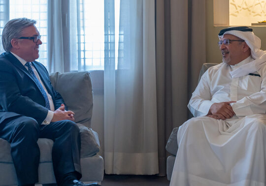 His Royal Highness Prince Salman bin Hamad Al Khalifa, the Crown Prince and Prime Minister, today met with the President of Chevron International Exploration and Production, Clay Neff, at Riffa Palace.