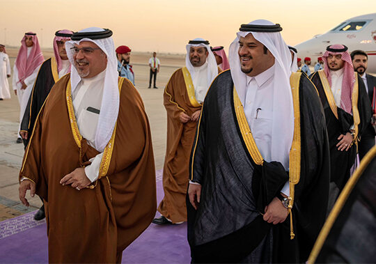 His Royal Highness Prince Salman bin Hamad Al Khalifa, the Crown Prince and Prime Minister, today arrived in the Kingdom of Saudi Arabia.