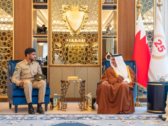 His Royal Highness Prince Salman bin Hamad Al Khalifa, the Crown Prince and Prime Minister, met with Zeyad Al Rowaiei and his son Mohammed Zeyad Al Rowaiei at Gudaibiya Palace, in commemoration of the latter’s graduation from The Royal Military Academy Sandhurst. His Royal Highness congratulated Officer Cadet Mohammed Zeyad Al Rowaiei on being awarded […]