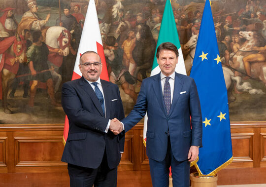 His Royal Highness Prince Salman bin Hamad Al Khalifa, Crown Prince, Deputy Supreme Commander and First Deputy Prime Minister, today met with HE Giuseppe Conte, Prime Minister of the Italian Republic, at the Palazzo Chigi in Rome.