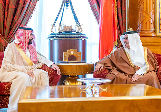 His Royal Highness Prince Salman bin Hamad Al Khalifa, the Crown Prince, Deputy Supreme Commander, and First Deputy Prime Minister, today received the newly appointed Ambassador of the Kingdom of Saudi Arabia to the Kingdom of Bahrain, HRH Prince Sultan bin Ahmed bin Abdulaziz Al Saud, at Gudaibiya Palace.