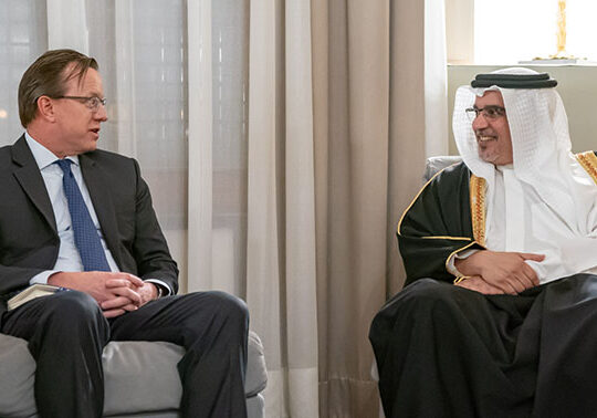 His Royal Highness Prince Salman bin Hamad Al Khalifa, the Crown Prince, Deputy Supreme Commander and First Deputy Prime Minister, today received the United States Ambassador to Bahrain, His Excellency Justin Siberell, and the Commander of the 5th Fleet, Combined Maritime Forces, Vice Admiral James J. Malloy, at Riffa Palace.