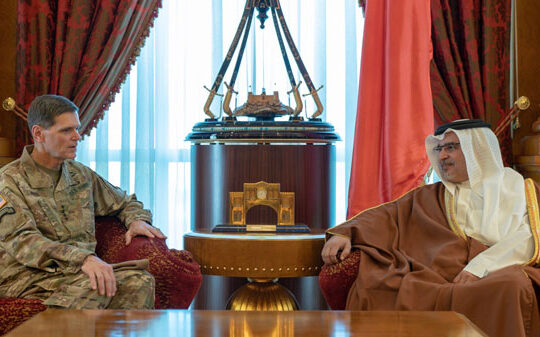 His Royal Highness Prince Salman bin Hamad Al Khalifa, Crown Prince, Deputy Supreme Commander and First Deputy Prime Minister, today met with the Commander of the United States Central Command (CENTCOM), General Joseph L. Votel, at Gudaibiya Palace.