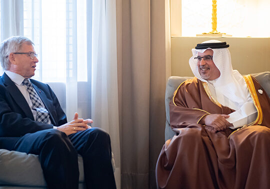 His Royal Highness Prince Salman bin Hamad Al Khalifa, Crown Prince, Deputy Supreme Commander and First Deputy Prime Minister, today met the former Prime Minister of the Kingdom of Norway, H.E. Kjell Magne Bondevik, at Riffa Palace.
