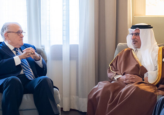 His Royal Highness Prince Salman bin Hamad Al Khalifa, Crown Prince, Deputy Supreme Commander and First Deputy Prime Minister today received a delegation from the U.S., led by the former Mayor of New York City, Rudolph Giuliani, at Riffa Palace.