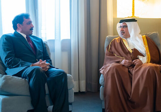 His Royal Highness Prince Salman bin Hamad Al Khalifa, Crown Prince, Deputy Supreme Commander and First Deputy Prime Minister today met the Ambassador of the Islamic Republic of Pakistan to the Kingdom of Bahrain, His Excellency Afzaal Mahmood, at Riffa Palace.