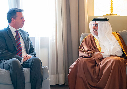 His Royal Highness Prince Salman bin Hamad Al Khalifa, the Crown Prince, Deputy Supreme Commander and First Deputy Prime Minister today met the United Kingdom’s Minister of State for the Armed Forces, the Rt Hon Mark Lancaster TD MP, at Riffa Palace.
