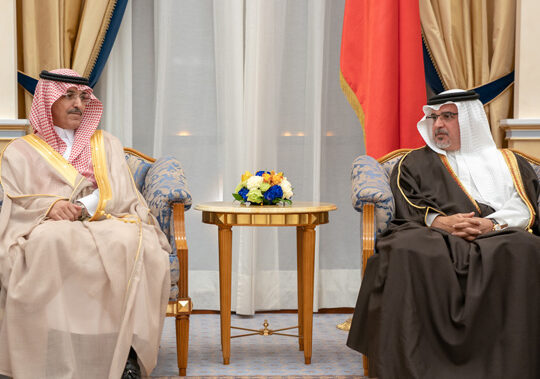 His Royal Highness Prince Salman bin Hamad Al Khalifa, the Crown Prince, Deputy Supreme Commander and First Deputy Prime Minister, today received H.E. Mohammed bin Abdulla Al Jadaan, Minister of Finance of Saudi Arabia, H.E. Obaid bin Humaid Al Tayer, Minister of State for Financial Affairs of the United Arab Emirates (UAE), and H.E. Dr Nayef bin Falah Al Hajraf, Minister of Finance of Kuwait, at Gudaibiya Palace.