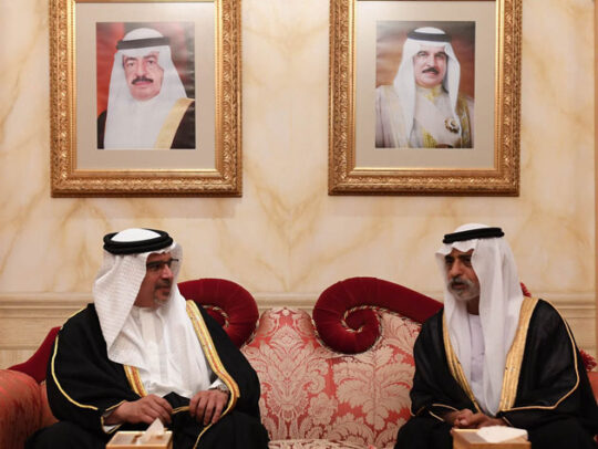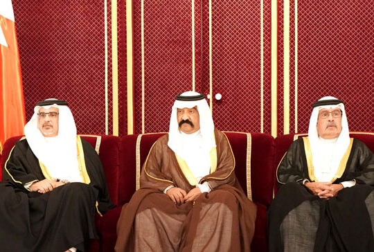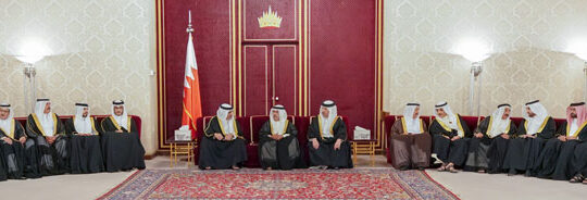 His Royal Highness Prince Salman bin Hamad Al Khalifa, the Crown Prince, Deputy Supreme Commander and First Deputy Prime Minister, in the presence of His Highness Shaikh Isa bin Salman bin Hamad Al Khalifa, His Highness Shaikh Mohammed bin Salman bin Hamad Al Khalifa, His Excellency the President of the Court of the Crown Prince, Shaikh Khalifa bin Duaij Al Khalifa, and His Excellency Shaikh Salman bin Duaij Al Khalifa, today received condolences from members of the royal family, senior officials, diplomats, high profile dignitaries from the region, and citizens at Riffa Palace following the sad passing of Her Highness Shaikha Hala bint Duaij Al Khalifa.