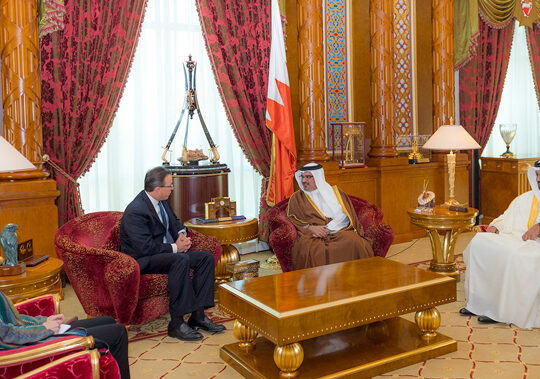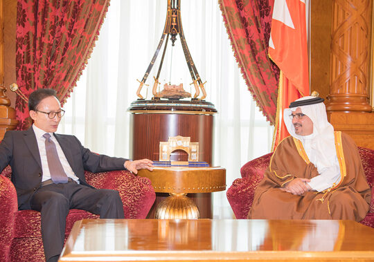 His Royal Highness Prince Salman bin Hamad Al Khalifa the Crown Prince, Deputy Supreme Commander and First Deputy Prime Minister today received former President of South Korea, H.E. Lee Myung-bak, at Gudaibiya Palace.