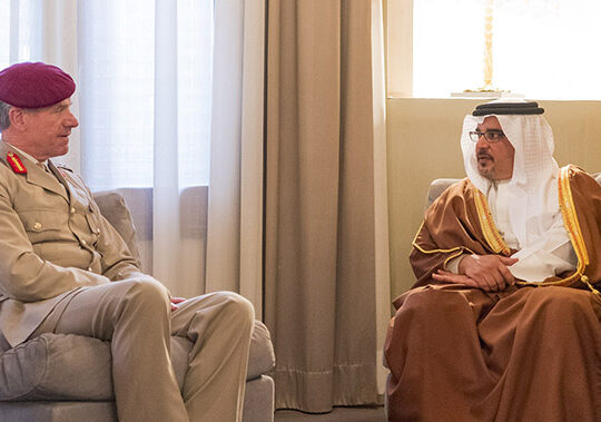 The Deputy King, His Royal Highness Prince Salman bin Hamad Al Khalifa, today met with the outgoing Defence Senior Advisor Middle East at the UK Ministry of Defence, Lieutenant-General Tom Beckett, at Riffa Palace.
