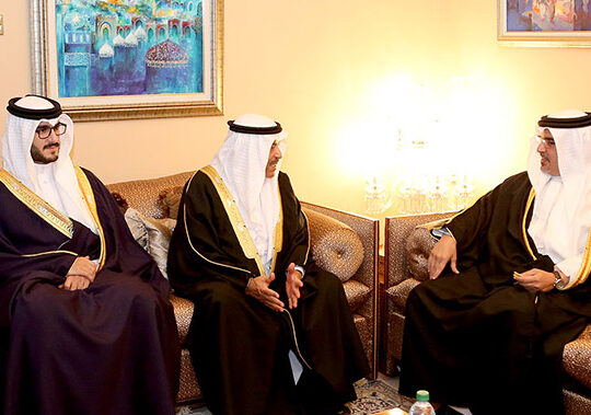 His Royal Highness Prince Salman bin Hamad Al Khalifa, Crown Prince, Deputy Supreme Commander and First Deputy Prime Minister, this evening visited the Majlis of Adviser of Media Affairs to His Majesty the King, Nabeel bin Yaqoob Al Hamar, the Majlis of the Kanoo family, and the Majlis of the Al Jishi and Al Khuza’ai families. HH Shaikh Isa bin Salman Al Khalifa accompanied HRH during the visits.