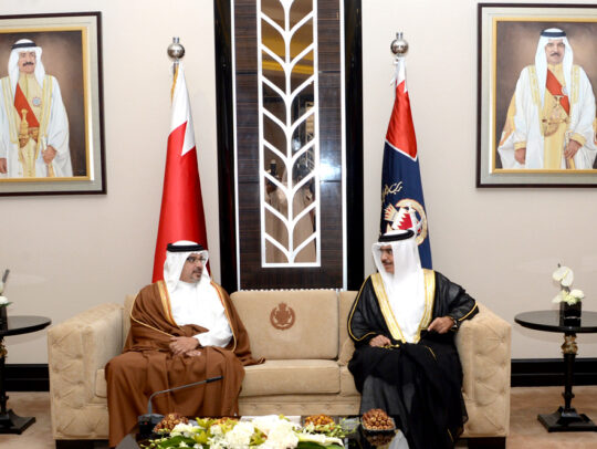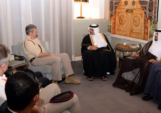 His Royal Highness Prince Salman bin Hamad Al Khalifa, the Crown Prince, Deputy Supreme Commander and First Deputy Prime Minister, this evening met General Sir Nicholas Houghton, the Chief of the Defence Staff for the British Armed Forces, at Riffa Palace.