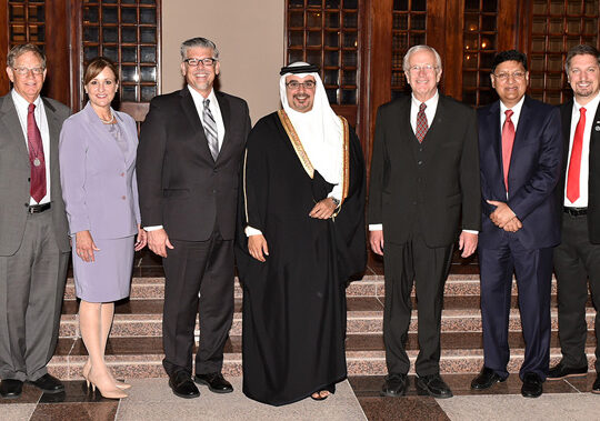 His Royal Highness Prince Salman bin Hamad Al Khalifa, the Crown Prince, Deputy Supreme Commander and First Deputy Prime Minister, this evening received General Secretary of the Reformed Church in America, The Rev. Dr. Tom De Vries and his accompanying delegation, at Riffa Palace.