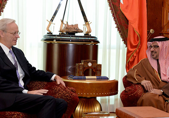 His Royal Highness Prince Salman bin Hamad Al Khalifa, the Crown Prince, Deputy Supreme Commander and First Deputy Prime Minister, today met the US Ambassador to the Kingdom of Bahrain, William Roebuck, at Gudaibiya Palace.