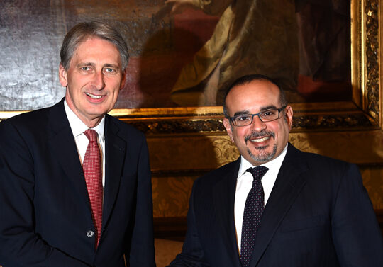 His Royal Highness Prince Salman bin Hamad Al Khalifa, Crown Prince, Deputy Supreme Commander and First Deputy Prime Minister, today met the UK Foreign Secretary, Philip Hammond MP, at the Foreign and Commonwealth Office in London.