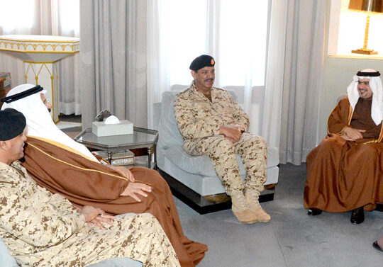 His Royal Highness Prince Salman bin Hamad Al-Khalifa, Crown Prince, Deputy Supreme Commander and First Deputy Prime Minister today met the newly appointed Minister of Defence Affairs, His Excellency Lieutenant General Yousef bin Ahmed Al-Jalahma and the newly appointed Chief of Staff, His Excellency Lieutenant General Theyab bin Sager Al-Noaimi at Riffa Palace.