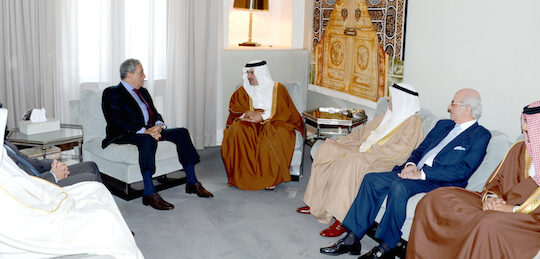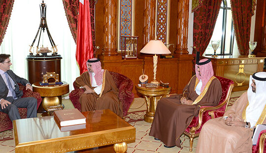 His Royal Highness Prince Salman bin Hamad Al-Khalifa, Crown Prince, Deputy Supreme Commander and First Deputy Prime Minister today met with Saudi Arabia’s Ambassador to Bahrain, His Excellency Dr. Abdulla bin Abdul-Malik Al-Shaikh and the Chief of the King Fahd Causeway Authority (KFCA), Mr. Bader Abdulla Al Otaishan at Gudaibiya Palace.
