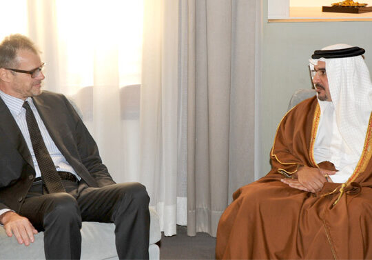 His Royal Highness Prince Salman bin Hamad Al-Khalifa, Crown Prince, Deputy Supreme Commander and First Deputy Prime Minister, today met Mohammed Sultan Saif Al Suwaidi, the United Arab Emirates Ambassador to the Kingdom of Bahrain, at the Gudaibiya Palace.