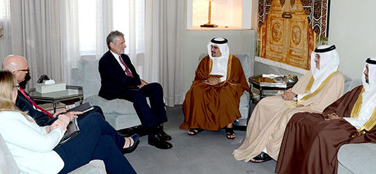 His Royal Highness Prince Salman bin Hamad Al-Khalifa, Crown Prince, Deputy Supreme Commander and First Deputy Prime Minister today met with the American Ambassador to the Kingdom of Bahrain, His Excellency Mr. Thomas Krajeski, at Riffa Palace.