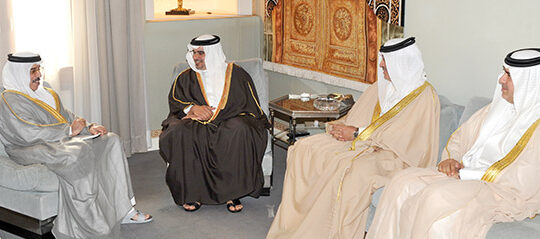 His Royal Highness Prince Salman bin Hamad Al-Khalifa, Crown Prince, Deputy Supreme Commander and First Deputy Prime Minister visited the Majlis of the President of the Supreme Council for Islamic Affairs, His Highness Shaikh Abdullah Bin Khalid Al Khalifa, the Interior Minister Lieutenant-General, His Excellency Shaikh Rashid bin Abdulla Al Khalifa and the Minister of the Royal Court, His Excellency Khalid bin Ahmed Al Khalifa in Riffa this evening.