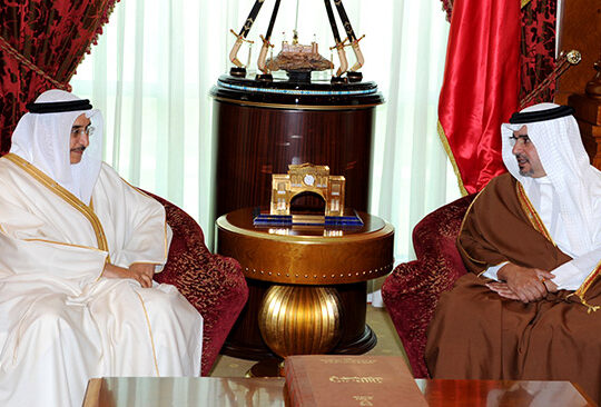 His Royal Highness Prince Salman bin Hamad Al-Khalifa, Crown Prince, Deputy Supreme Commander and First Deputy Prime Minister met at the Gudaibiya Palace today the President of the Asian Chess Federation (ACF), Shaikh Sultan Bin Khalifa Bin Shakhboot Al Nahyan .