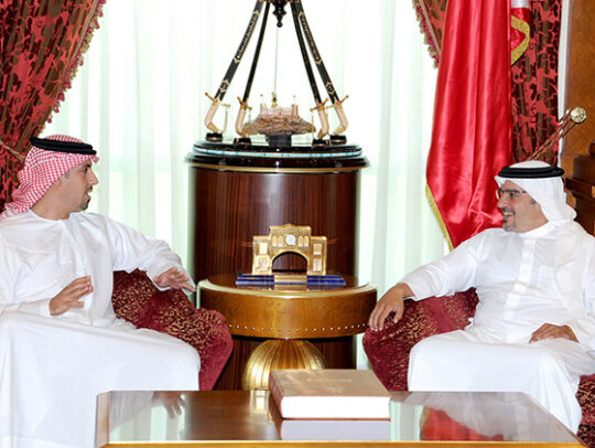 His Royal Highness Prince Salman bin Hamad Al-Khalifa, Crown Prince, Deputy Supreme Commander and First Deputy Prime Minister today received, at the Gudaibiya Palace, the Deputy Prime Minister and Chairman of Gulf Air His Excellency Shaikh Khaled bin Abdullah Al Khalifa.