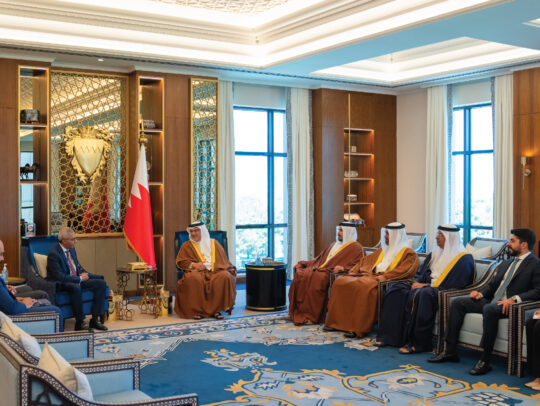 His Royal Highness Prince Salman bin Hamad Al Khalifa, the Crown Prince and Prime Minister, today met with the Lord Mayor of the City of London, the Rt. Hon Alderman Nicholas Lyons, at Gudaibya Palace.