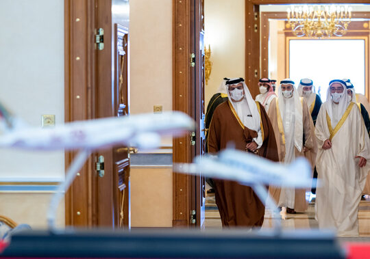 HRH the CP and PM accompanied by HH Sh. Nasser bin Hamad and HH Sh. Isa bin Salman, received HH Sh. Khalid bin Hamad, on the occasion of HH Sh. Khalid’s appointment as President of the General Sports Authority