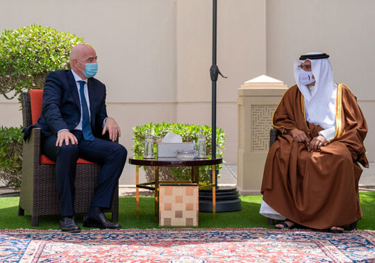 HRH the Crown Prince and Prime Minister receives the President of FIFA